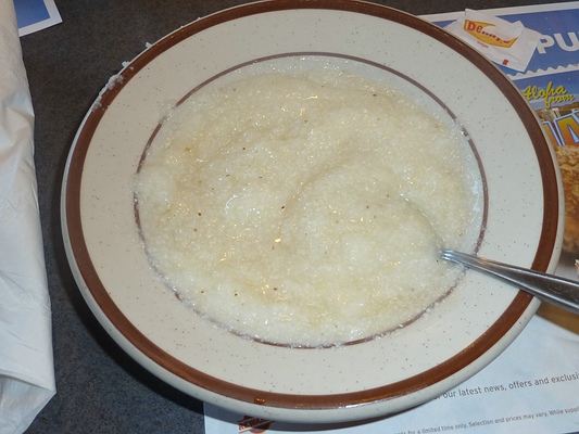 Dennys Grand Slam Breakfast und nachstehend die bei weiterem schlechtere Alternative Grits