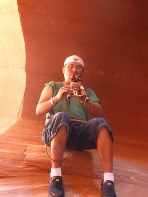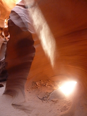 Vom Horseshoe Bend ging’s geradewegs in Richtung der Schornsteine der Navajo Power Plant und zum Lower Antelope Canyon – Wartezeit um 10:00 ca. eine 1/2 Stunde inkl. Erwerb der Tickets – aber jede Minute wert. Mit unserem Guide Tillman verschwanden wir nach kurzem Marsch „unter der Erde“. Schnell ist man von den Licht-/Schattenspielen und einzelnen Formationen mit ihren Farben gefangen und treibt durch das Labyrinth. Dazwischen immer wieder nützliche Tipps für gute Fotospots und zwei eindrucksvolle Einlagen mit Navajomusik auf seiner Flöte. Viel zu schnell vergeht die Zeit und über die Metalltreppe geht es wieder ins gleißende Sonnenlicht.