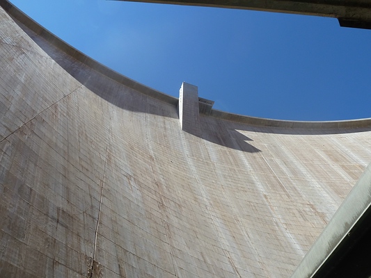 ein kleiner 4 Meter hoher Betonkübel erinnert an die Bauarbeiten zum Damm in den Jahren 1956-1964