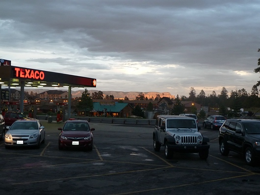 Noch schnell den Durst unseres Auto stillen (ganz schön leer die Kiste, bei einem Preis von 3,799 USD/GAL läuft der Zähler) und weiter geht es über die US98 und die US160 entlang der Black Mesa zum Tagesziel Kayenta.