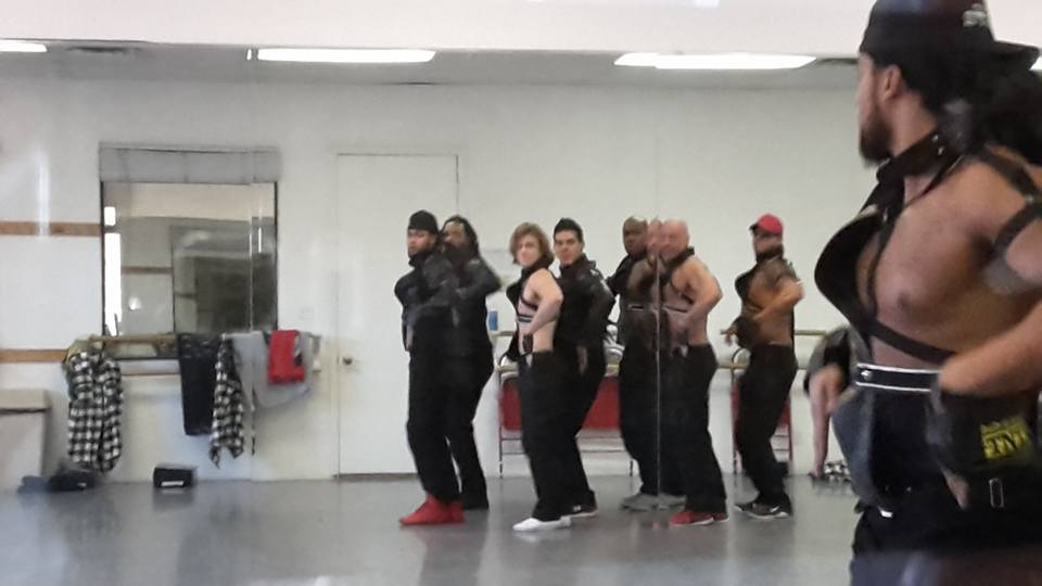 a, den Herren in der Mitte. Mikey. Ehemaliger Mitglied bei den Chippendales. Hier auf einem Werbeplakat. Las Vegas ist halt doch auch irgendwie ein größeres Dorf