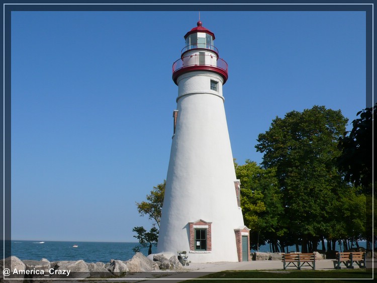Marblehead Lighthouse. Der Leuchtturm ist sehr schön anzusehen. Auch der Park und der Strand sind wunderschön. Wir lassen uns hier doch Zeit und genießen die tolle Gegend. In der Ferne kann man den Sundusky Freizeitpark mit seinen vielen bekannten Fahrgeschäften erkennen.