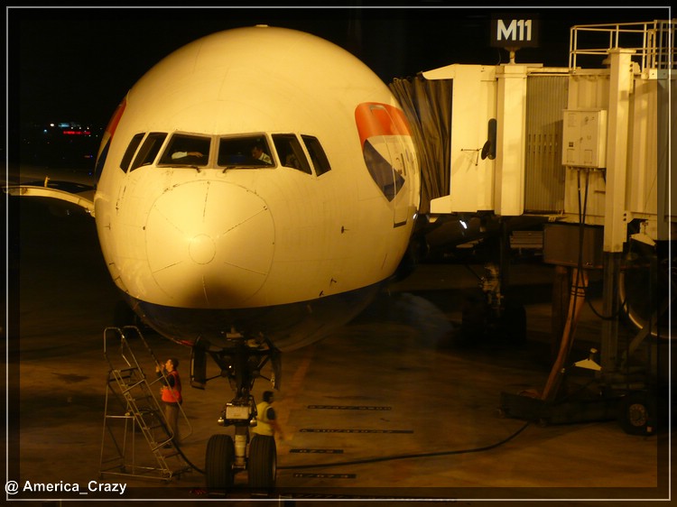 Wir tranken noch ein paar Drinks von der Bar, natürlich zu sehr hohen Preisen, aber auch ein Ritual das wir bei Abflügen aus O´Hare zu pflegen schätzen. Anschließend beobachtete ich die 747, der BA Flug vor unserem Flug, in Richtung London abheben. Schon bald wurde unsere Boeing 777 herbei gefahren. Das warten würde sich aber noch verzögern, da diese Maschine dummerweise Verspätung hatte.