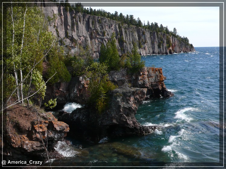Dieser war gerade mal 200m entfernt. Der Parkplatz am Straßenrand war auch schon ziemlich gefüllt. Im Park selber gibt es eine Abfolge von Wasserfällen, in denen sich der Cascade River in den Lake Superior ergießt. Wir laufen den schönen Rundkurs entlang des Flusses und genießen das Tosen. Wirklich herrlich. Auf der anderen Seite des Parks hat man wiederum einen sehr schönen Blick auf den blauen Lake Superior. Hier verbringen wir auch wieder an die 1.5 Stunden.