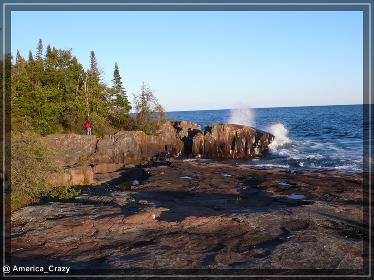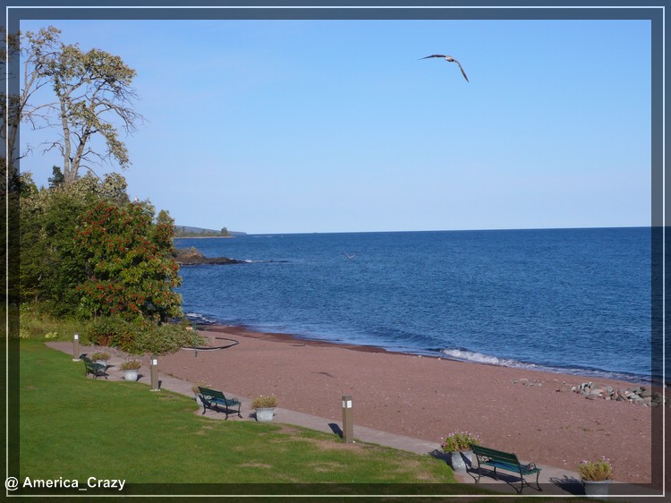Shovel Point bringen sollte. Ich frage noch kurz beim Park Ranger nach und schon kann es losgehen. Der Weg ist sehr nett, führt er doch fast am Lake Superior entlang. Die Ausblicke sind einfach nur ein Traum. Man kann es überhaupt nicht in Worte fassen, es ist zu schön hier oben in Minnesota. Es dauert keine 20 Minuten und schon sind wir sehr Nahe am Shovel Point dran. Anschließend laufen wir noch kurz die Treppe direkt zum Strand und Lake Superior herunter. Die blaue Farbe des Sees ist heute wieder sehr beeindruckend. Hier verbringen wir wieder einige Zeit.