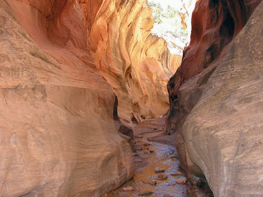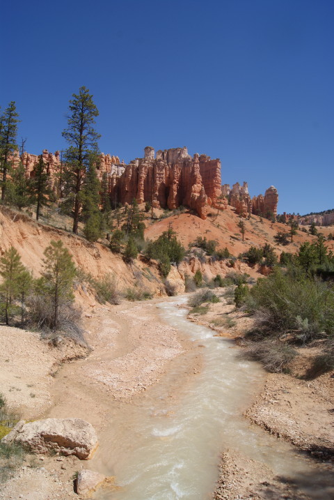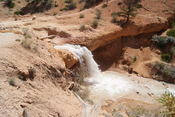 Gegen 11 Uhr erreichen wir unseren ersten Wanderweg - noch außerhalb des Bryce NP. Ich habe den Trail zu "Mossy Cave" auf der CD "Tour-Idee" gefunden. Er ist leicht zu laufen und mit 0,4 Meilen auch relativ kurz. Es geht vorbei an einem kleinen Fluss