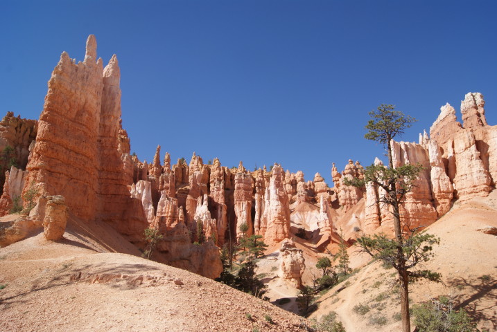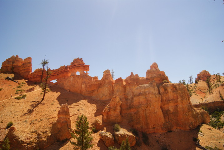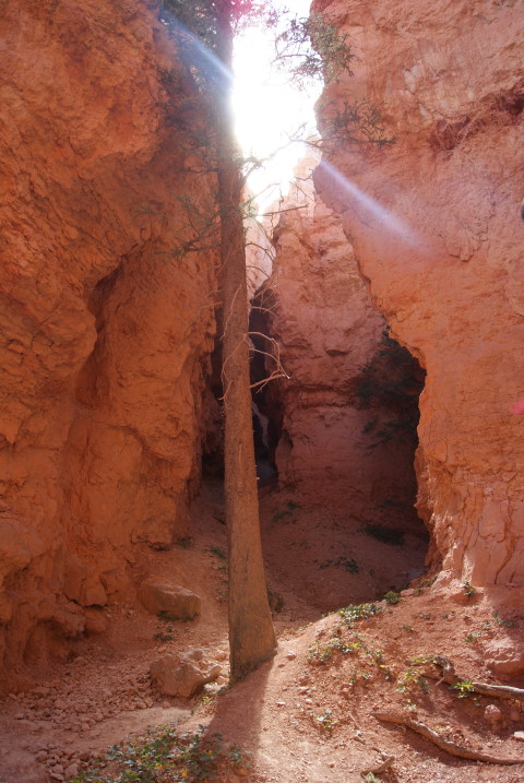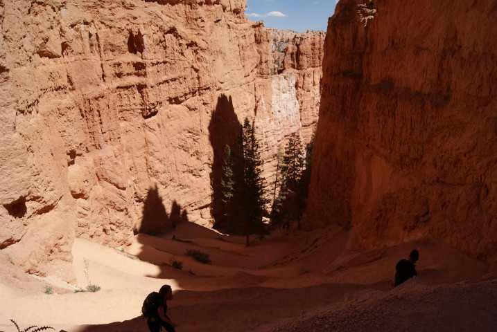 Der Zugang über Wall Street ist nicht begehbar, weil es hier einen Felsrutsch gab. Also gehen wir die Ausweichroute, die sich steil zwischen den Hoodoos nach unten schlängelt.