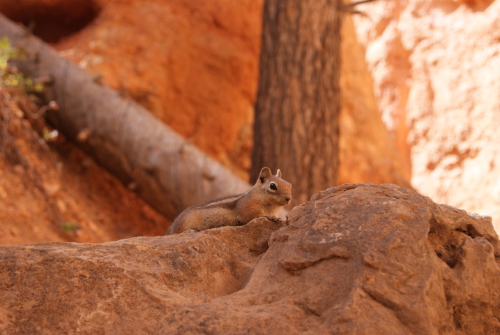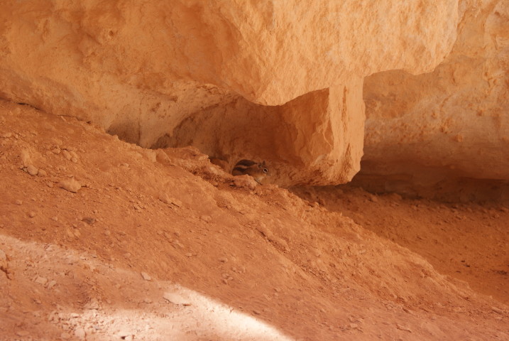 Am Bryce Point ist sie dann auch.... diese von mir mit Schrecken erwartete Menschenmenge. Wär ja an sich nix schlimmes, weil jeder ein Recht darauf hat, diese Naturschönheiten zu bewundern. Aber geht das auch ohne pausenloses Geschnatter? Ich bin bestimmt ne alte "Laberfaxe", aber hier war wohl ein Bus voller italienischer Touris angekommen, bei denen die Frauen sich gegenseitig mit spitzen Schreien überboten. Besonders, als am Wegesrand auch noch ein Squirrel zu sehen war *augenverdreh*