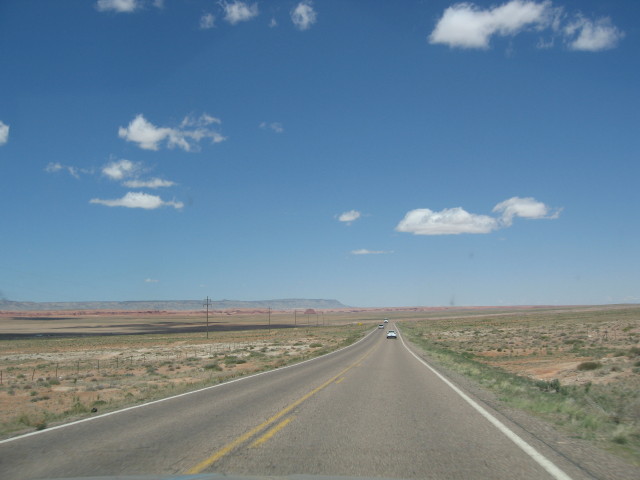 Dann passieren wir die Staatsgrenze zu Utah und hinter Monticello verändert sich die Landschaft zusehends. Es wird wieder hügeliger und man ahnt schon, daß man bald wieder im rote-Steine-Land ist.