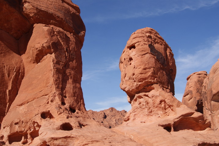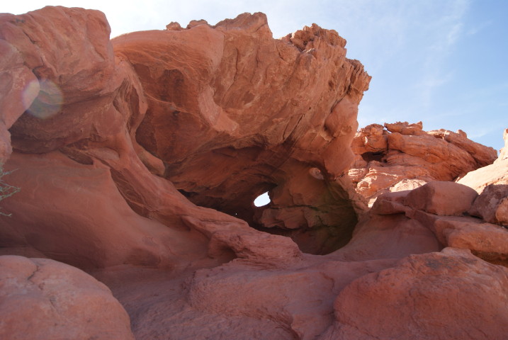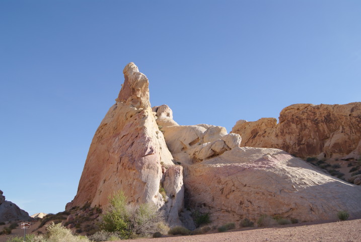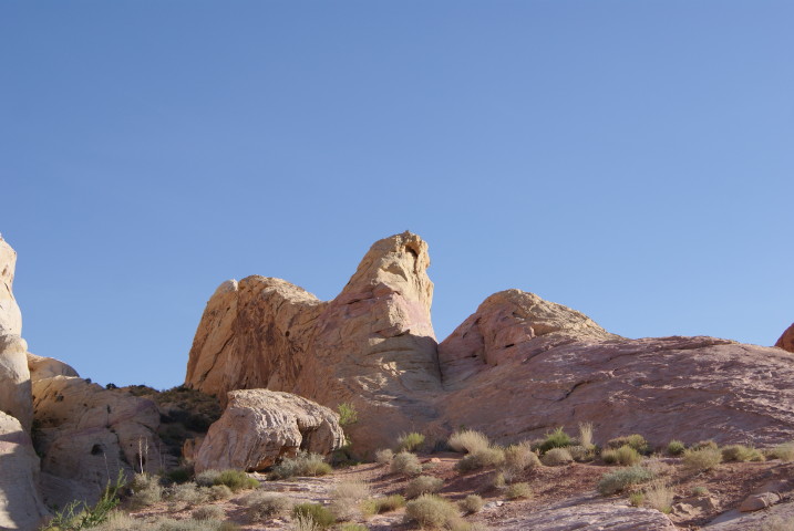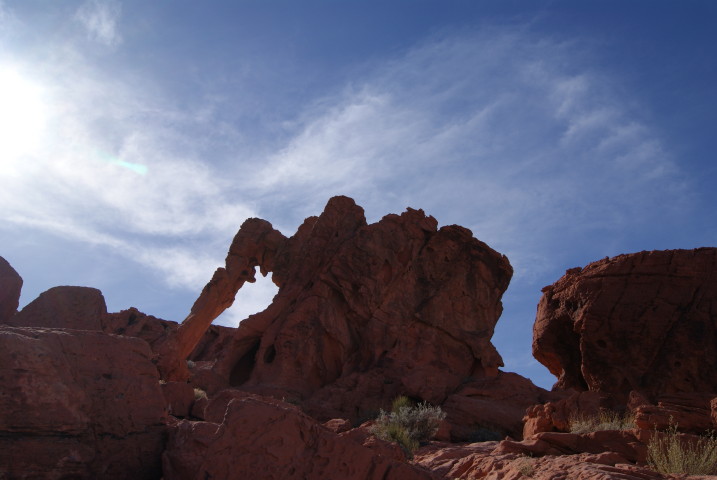 Im Valley of Fire fahren wir zuerst zum Parkplatz, an dem der kurze Trail zum Elephant rock beginnt. Dort kann man unendlich viele Felsformationen und Rundbögen entdecken.