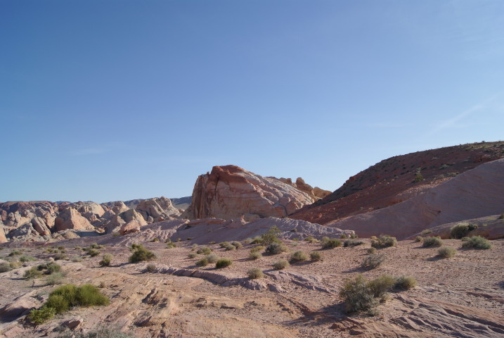 Wir fahren weiter am Visitor Center vorbei zur Rainbow Vista. Der über 1 Meile lange Weg ist mir aber in der Hitze eindeutig zuviel und wir fahren die dirt road weiter bis zum silica dome. An dieser Stelle geht das tiefe rot der Felsen, wie mit dem Lineal gezogen in ein helles beige über. Total faszinierend!