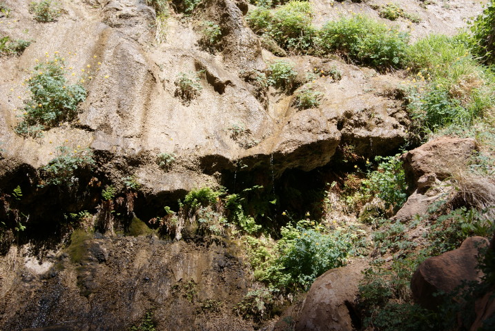 Durch das Schmelzwasser haben sich einige "hängende Gärten" gebildet. Das Wasser sickert durch den Stein und wo es auf Granit trifft, läuft es quasi waagerecht aus dem Felsen raus. Und dort wachsen dann Blumen, Farne und son Zeug.