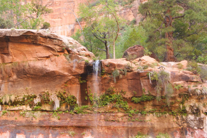 Es ist einfach unglaublich schön anzusehen, wie das Wasser so einfach aus dem Stein rauskommt und welche Pflanzen sich dort entfalten. Der Zion NP ist und bleibt einfach "mein" Märchenpark. In meiner Phantasie sehe ich mal wieder Elfen und Trolle hinter den Steinen  :wink: