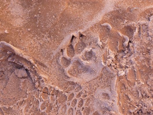 An einem der Wasserlöcher finden wir noch diese – sehr frischen - Tierspuren: