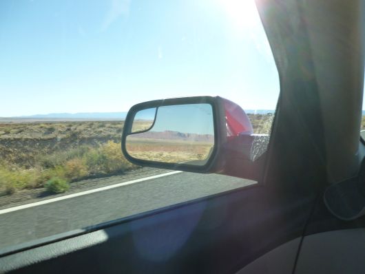 Während wir zum x-ten Mal versuchen die Systematik mit der Zeitumstellung zwischen AZ und UT zu verstehen (UT ist weiter westlich, eigentlich müsste es dort also früher sein, tatsächlich hinkt UT hier AZ eine Stunde hinterher) sehe ich das hier im Rückspiegel was mir ein Foto wert ist: