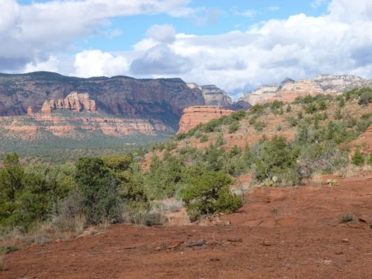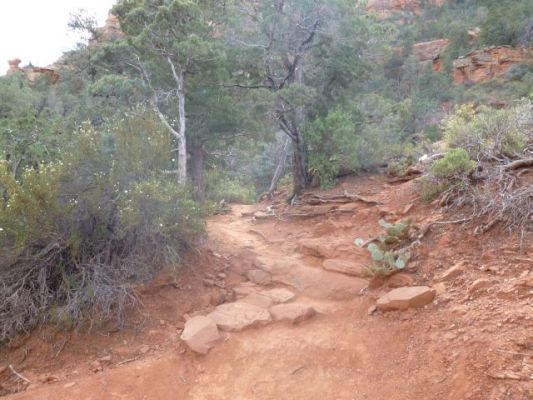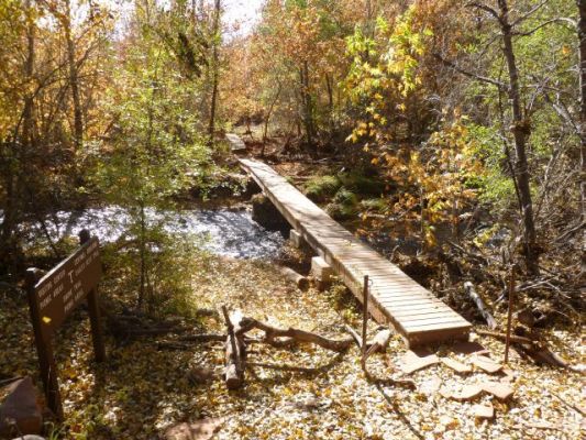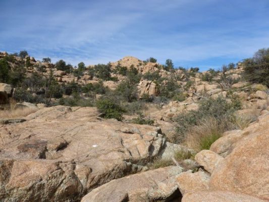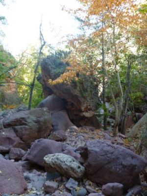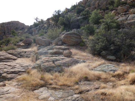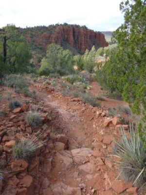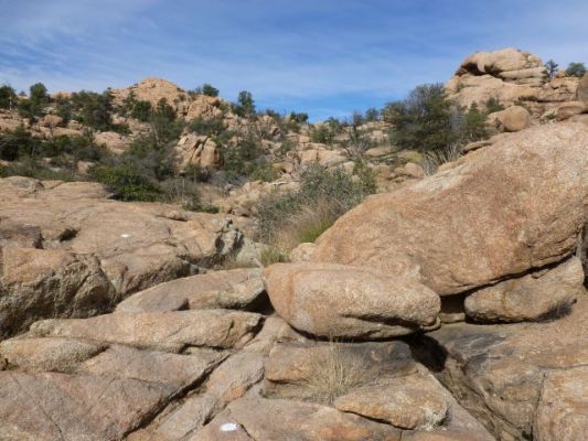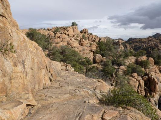 Erst habe ich behauptet da hätte jemand seinen Hund mit auf den Trail genommen, aber erstens müsste das schon ein ziemlich großer Hund gewesen sein (den man wohl kaum über das ein oder andere Hindernis hätte tragen/hieven können) und zum anderen sind keine Krallen zu erkennen. Auch als nicht Hunde oder Katzenbesitzer meine ich mal gelernt zu haben, dass Hunde ihre Krallen nicht einziehen können, Katzen dagegen schon. Das müsste dann aber schon eine ziemlich große Katze gewesen sein, so mit einer Pfote von ungefähr 15 x 15 cm Durchmesser – für einen Luchs eigentlich deutlich zu viel. Ein unausgesprochenes Wort legt sich drohend über den Wash: „Mountain Lion“… (ja die soll es hier auch geben).