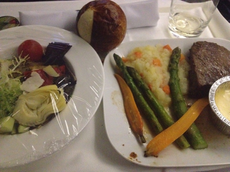 Der Rückflug war wie erwartet ruhig und wir genossen das Essen und das extra Dessert, welches wir bekamen, weil so viele Leute nicht essen wollten und bereits schliefen. Das hatte zur Folge, dass das Licht schon ausgeschaltet wurde, als Ulrike noch beim Eis essen war.  :lol: