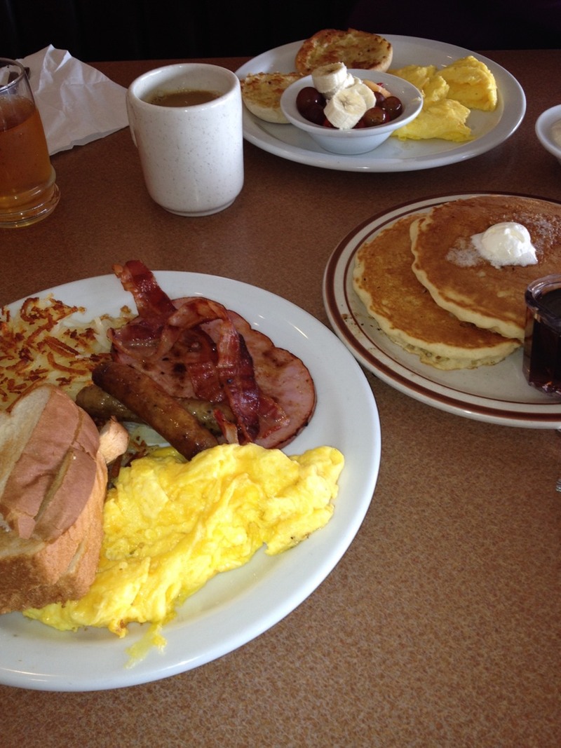 Gegen 9 Uhr checkten wir aus und fuhren zu einem Denny´s kurz vor dem Flughafen. Wir frühstückten und beobachteten die vielen Reisebusse die hier an den Motels parkten, scheinbar starten oder enden einige Busrundreisen.