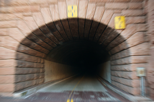 Elmo führt eine kleine Herde PKWs durch den finsteren Tunnel, der by the way aber wirklich so was von FINSTER ist! Unsere Jungs vom ADAC hätten den Tunnel sicherlich sofort auf die rote Liste gesetzt: Kein Licht, keine Fluchtwege, nur Fels und Dunkelheit mit einer gelben Linie in der Mitte. Heilige Sch...! Wir fahren krampfhaft in der Mitte. Jetzt bloß keinen Schlenker machen! Uaaahh. Fast wie Geisterbahn. Geil. Plötzlich Licht am Ende des Tunnels. Geschafft!