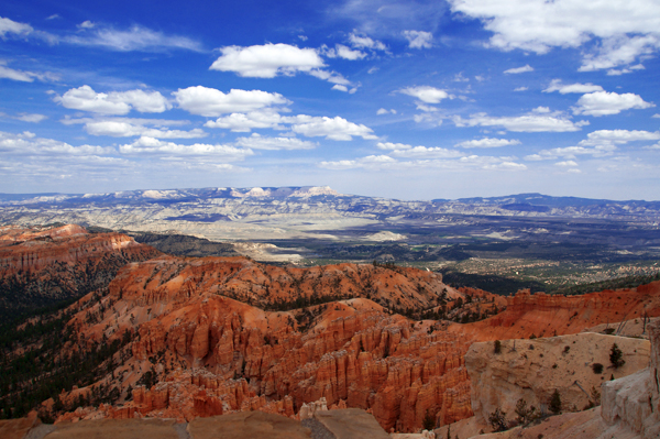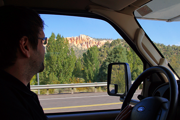 Wir kommen gut voran und fahren an der Mt. Carmel Junction hoch Richtung ... WOW! ... Salt Lake City. Ich fühl mich ein bisschen olympisch. Auf dem Highway 89 gibt es nicht wirklich viel zu sehen: viel Farmland mit vielen Rindern, Pferden und sogar Lamas/Alpakas (ich kann ab 100 m Abstand nicht auseinanderhalten). Wir lassen uns einfach durch die Gegend tragen. Dann geht's rechts weg Richtung Bryce Canyon auf den wundervollen Highway 12 ("Scenic" auch schon direkt am Beginn, wir fahren ihn ja nur ein kurzes Stück) und am Red Canyon vorbei. Dort wollen wir übermorgen eventuell noch Halt machen, wenn wir zurückfahren. Herrlich hier. Überall sieht es einfach nur toll aus, wie kann das sein??? Wie machen die das bitte? Kurz vor dem Parkeingang dann der hier:
