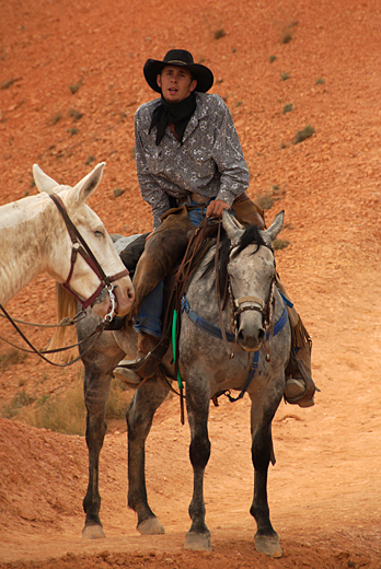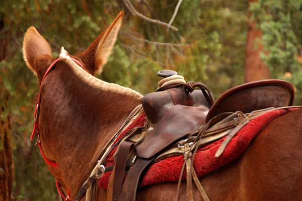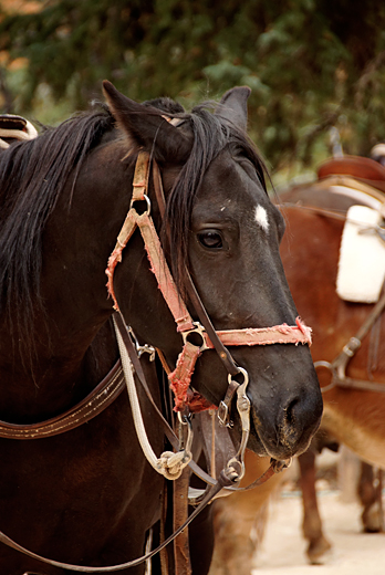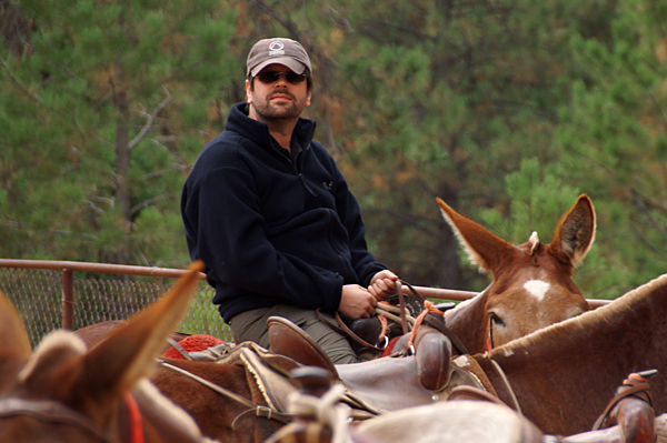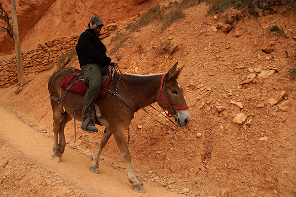 Endlich tauchen die Cowboy-Guides und der Cheff auf. Ich zähle kurz durch und komme auf 23 Leute. Wenn jetzt pro Guide 8 Hotties mit sollen, wird das echt ne knappe Kiste! Le Cheffe stellt uns mit den Stand By Tickets erstmal auf die Seite – also "Stand by" ganz wörtlich genommen. Nach und nach werden die Leute auf die Pferde und Mulis verteilt. Nachdem jeder einen reitbaren Untersatz zugeteilt bekommen hat, schaut uns der Cheff erst mal sehr mitleidig an ... na, super. Kurz vor dem Ziel verkackt, oder wie? Er zählt noch mal durch. 24 Leuts. Ich tu so, als würd ich schwitzen und beten und wat weiß ich ... ah, und die Tiggeräuglein schmeiß ich auch noch in die Waagschale: