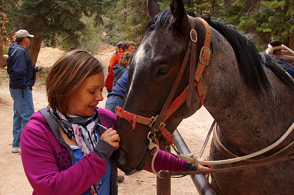 Nach 3 Stunden Pferderücken mit einer Viertelstunde Pause kommen wir glücklich wieder am Corral an und ich kann sagen, dass das auch ohne Reitkenntnisse ein wirklich tolles Erlebnis ist, durch den Canyon zu reiten! Wir können das nur wärmstens empfehlen. Es wird eigentlich grundsätzlich im Schritt geritten, lediglich ab und an trabt man zur Gruppe auf, wenn man etwas zurückgefallen ist. Die Guides zeigen einem alle von unten sichtbaren Sehenswürdigkeiten (Thor's Hammer, The Queen, The Piano etc.) und heitert mit diversen schlecht-rechten Cowboywitzen allet etwas auf. Es macht jedenfalls echt Spaß! Also, hoch aufs Pferd oder Muli, wenn ihr das nächste Mal im Bryce seid. Aber denkt dran: " Go back to the lodge, smile and walk clear and easy – we do not need bad advertising!" Ähm, ja. Also der Hintern tut mir schon ein bisschen weh, mal sehen, wie es morgen mit Muskelkater aussieht.