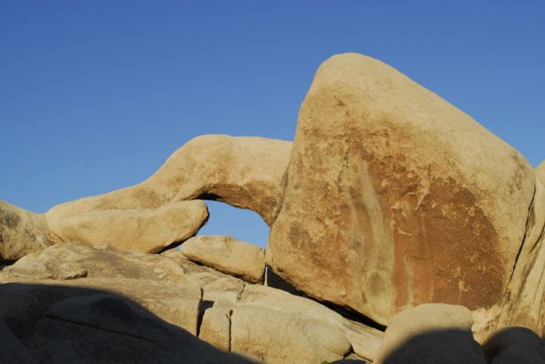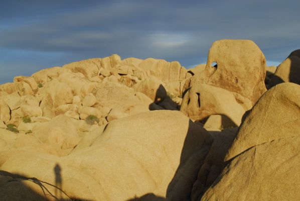Dann komme ich am Parkplatz vom Skull Rock vorbei und wo vorhin noch eine ganze Reihe von Fahrzeugen stand ist jetzt alles leer. Also natürlich gleich ein Stop und den Skull Rock abgelichtet, der sich schön in der Abendsonne präsentiert.