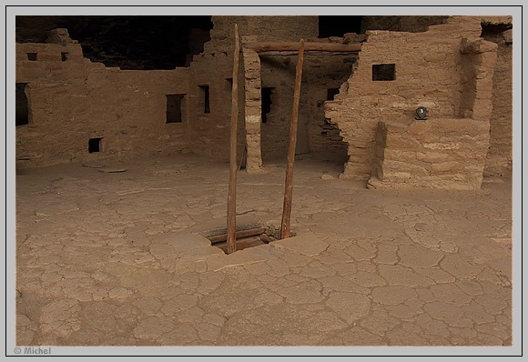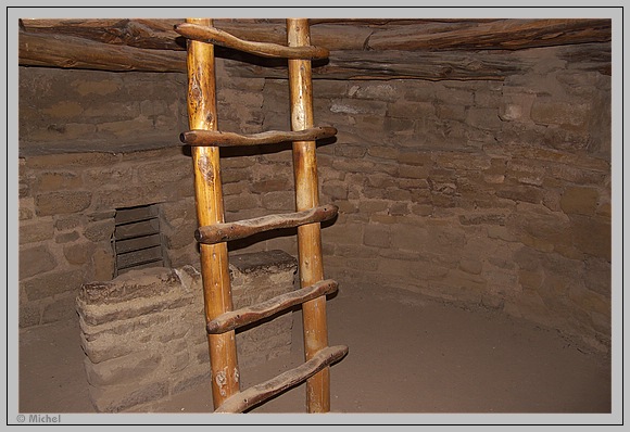Ich finde dies Gebäude faszinierend und da ich natürlich aus meinen Karl May Büchern auch die Konstruktion der Pueblos kenne steige ich natürlich die Leiter hinab in die Kiva.