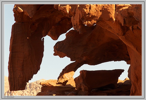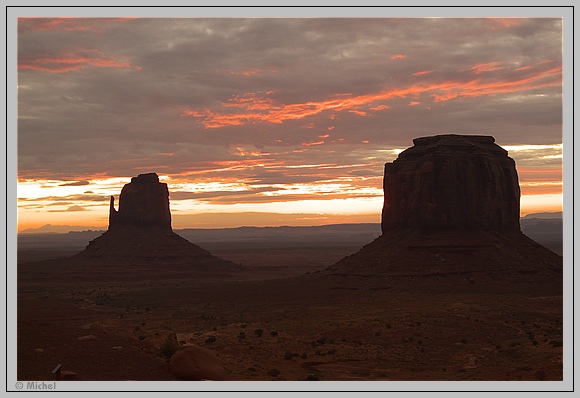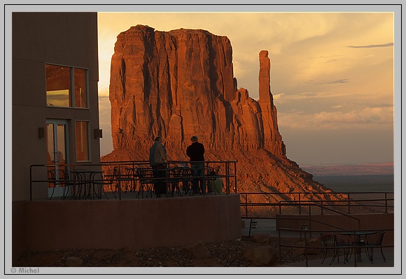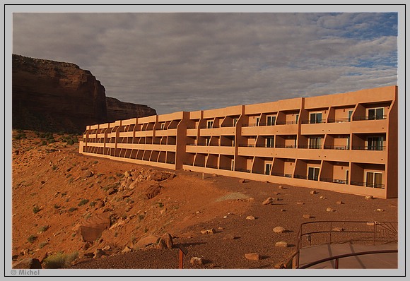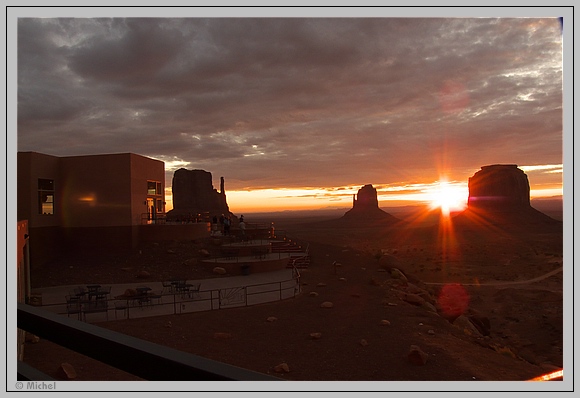 Das Stativ steht noch auf dem Balkon von gestern, so dass ich schnell bereit bin. Leider wird die Stimmung bei Sonnenaufgang durch eine Dame getrübt die auf dem Balkon ein äußerst lautstarkes Telefongespräch führt und das mindestens eine halbe Stunde lang. Ich glaube deren Stimme war im ganzen Monument Valley zu hören.