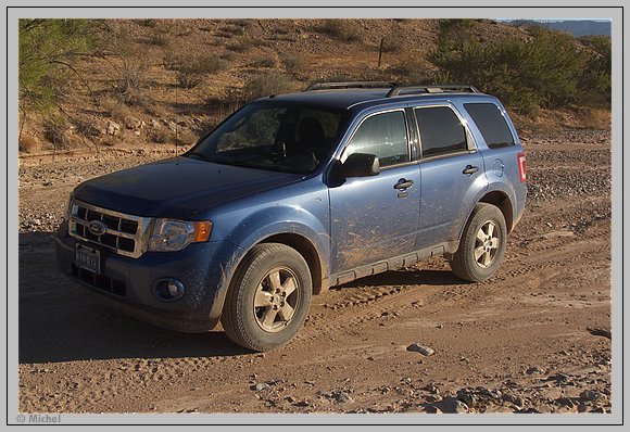 Dabei macht mein Ford Escape überhaupt keine Probleme, flott zieht er seine Spuren durch den Sand. Man muss halt vorausschauend fahren um rechtzeitig vor den ruppigen Felsflächen dazwischen das Gas weg zunehmen.