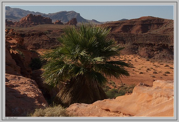 Etwa um 10 am erreiche ich Little Finland. Wenn ich hinunter schaue auf die große Sandfläche vor der Palme, dann verstehe ich auch warum die Zufahrt bis dorthin gesperrt wurde. Eine Unmenge von Fahrspuren zeigt, dass dort einige Besucher ihr Unwesen getrieben haben.