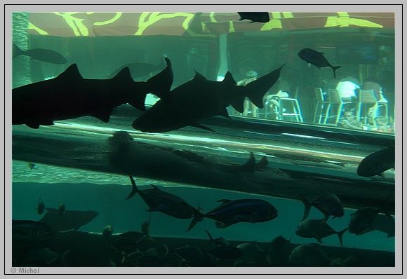 Natürlich teste ich auch die Rutsche durch das Haifischbecken. Das Rutschen macht Spaß, wobei man sagen muss, dass man natürlich bei der Geschwindigkeit nicht mitbekommt, dass um einen herum Fische schwimmen. Das sehen nur die Zuschauer außen herum.
