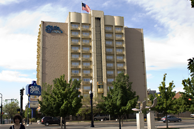 Dann ging es auf die Straßen von SLC. Mit einem Auge auf der Straße, das andere Auge auf dem Navi, ging es los. Die Stadt ist aber sehr übersichtlich angelegt, starken Verkehr hatten wir auch nicht (es war ca. 15.30 Uhr Ortszeit), somit kamen wir ganz entspannt zum Hotel, Hier gab es freie und für uns kostenlose Parkplätze und dann konnten unser Zimmer in Beschlag nehmen. Zuerst relaxten wir und erfrischten uns. Danach waren wir doch neugierig (nein, wissbegierig) und begaben uns zu einer ersten Erkundungstourin die Stadt. Kathrin blieb im Zimmer und testete das Internet.