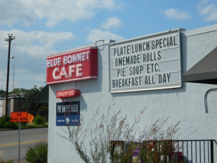 In Marble Falls machen wir Halt am "Blue Bonnet Cafe", wo wir am späten Nachmittag ein verfrühtes Abendbrot zu uns nehmen, weil später keine Zeit mehr sein wird.