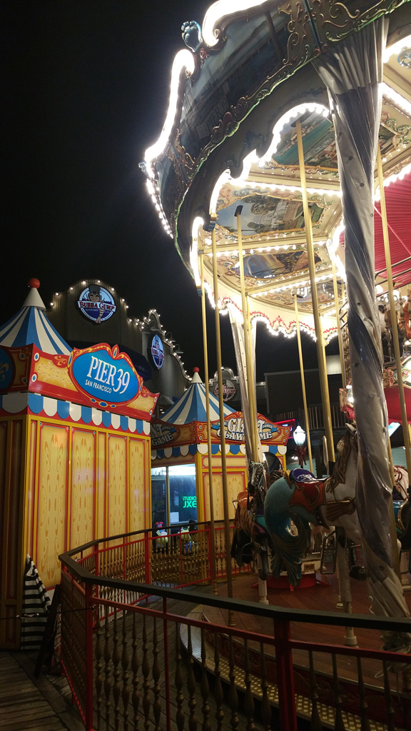 Die Planung war, zum Wachbleiben direkt zur Golden Gate Bridge zu fahren. Also los zur Market Street und in die Straßenbahn. Unterwegs habe ich dann wohl zu positiv von Pier 39 erzählt. Ein kleiner Abstecher war gewünscht und kein Problem. Die Seelöwen begeisterten meine Eltern dann aber so, dass es schließlich dunkel war und wir die Golden Gate Bridge erst mal strichen. Der frühe Sonnenuntergang beschäftigte uns dann auch den gesamten Urlaub durch.