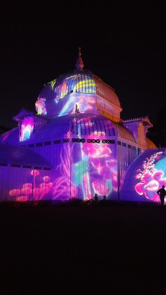 Von der Endhaltestelle ging‘s mit dem Bus nach Haight Ashbury. An den painted ladies hatten wir leider schlechtes Licht. Aber das Motiv kennt man ja. Wir liefen zum Golden Gate Park, wo noch eine Lichtershow zu 50 Jahre Summer of love lief.