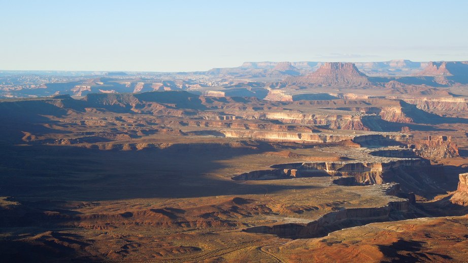 Heute stand der Canyonlands National Park auf dem Programm. Aus diesem Grund sind wir sehr zeitig aufgestanden, es war noch dunkel draussen. Bei unserem Aarchway Inn wars Frühstück mit drin und es war auch wirklich gut und reichhaltig, hat alle drei Tage prima geschmeckt. Es gab auch Rührei, Speck, Würstchen (ich weiß … fiese Kalorienmonster, aber ich mags im Urlaub gern  :wink:), für die Mädels eher Toast, Müsli, Milch, Obst und auch echt leckeren Kaffee.