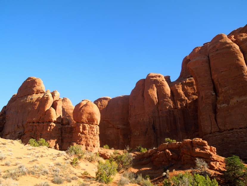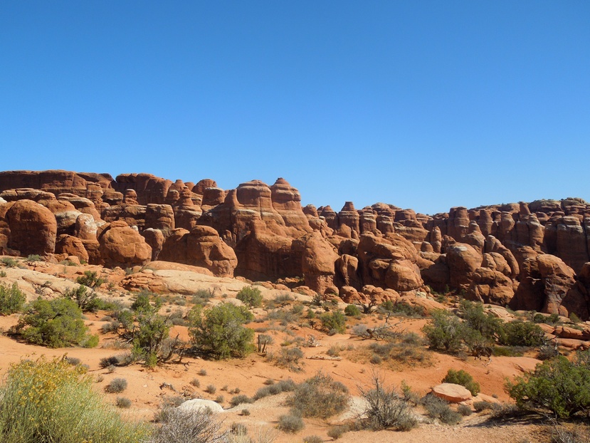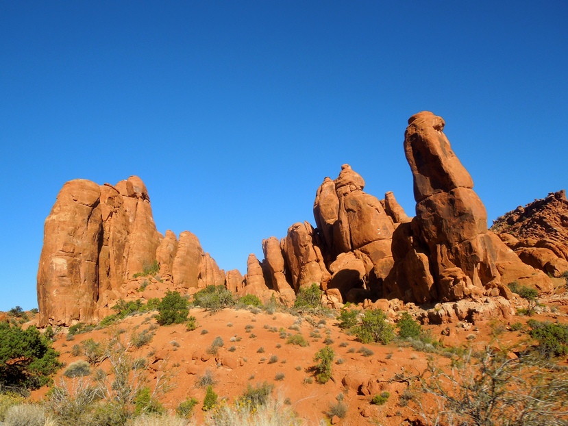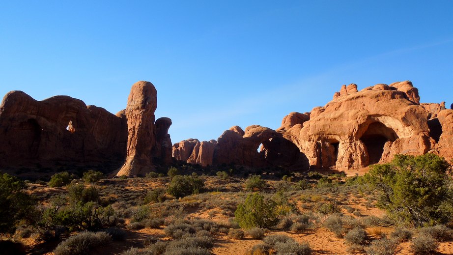 Ausgeruht und gespannt auf den neuen Tag im Arches NP fanden wir uns heute etwas später im Frühstücksraum ein, hatten ja Zeit  :wink: Vormittags wollten wir den Bereich um den Devil´s Garden Trailhead anschauen und am Nachmittag dann als krönenden Abschluss die Wanderung zum Delicate Arch in Angriff nehmen.