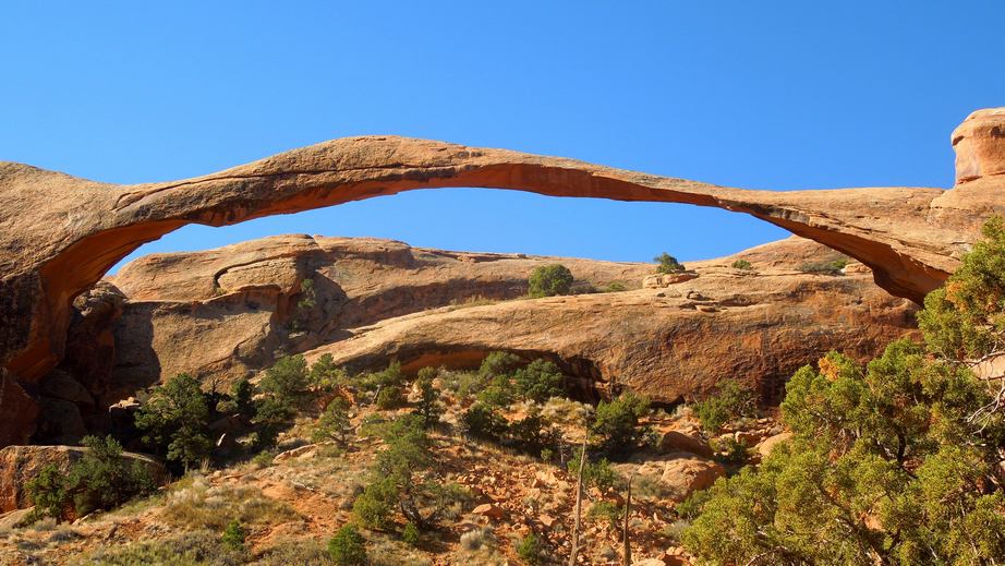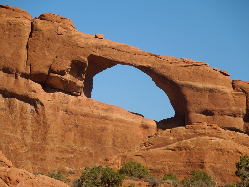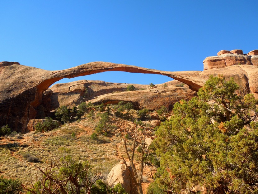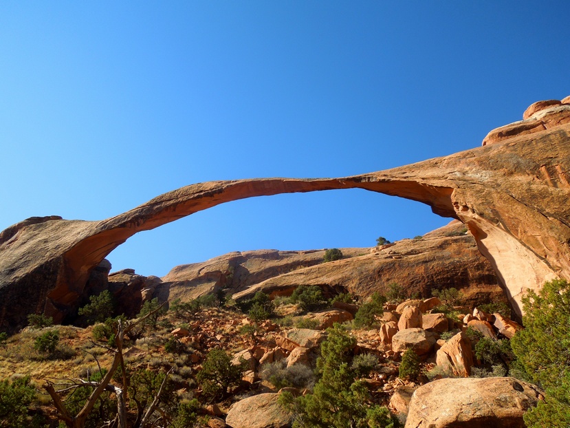 Der Landscape Arch ist natürlich wunderschön, aus der Nähe betrachtet erkennt man erst wie filigran er doch ist. Man kann nur hoffen das er noch etwas länger Bestand hat und nicht das Schicksal des in der Nähe befindlichen Wall Archs teilen muss, welcher 2008 eingestürzt ist. Aber er sieht schon recht dünn und gefährdet aus :