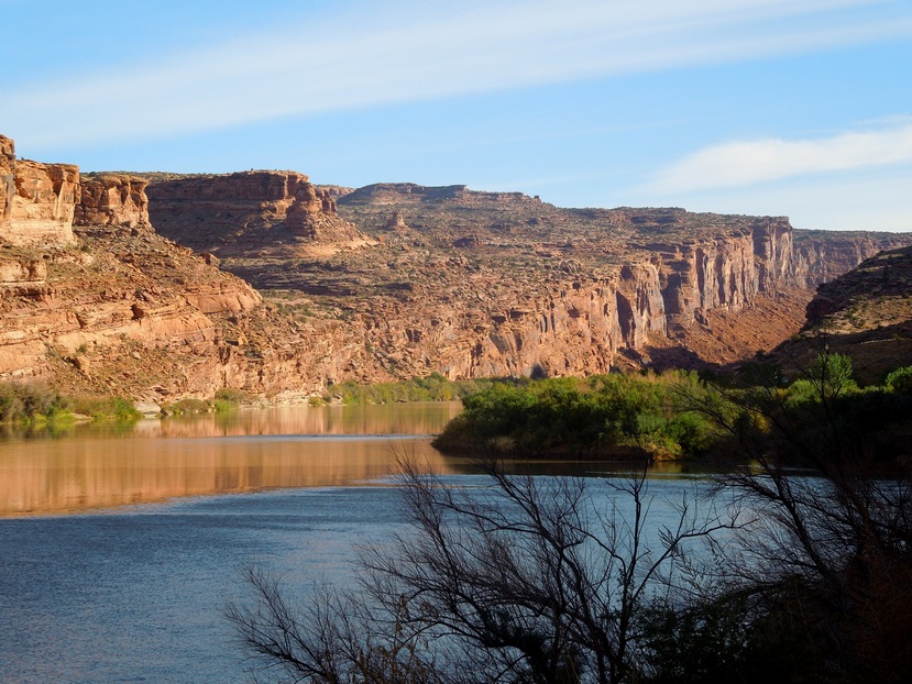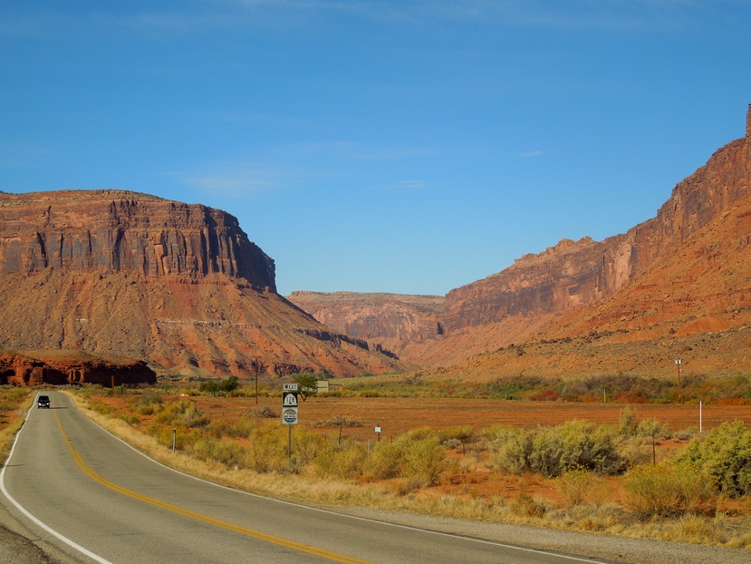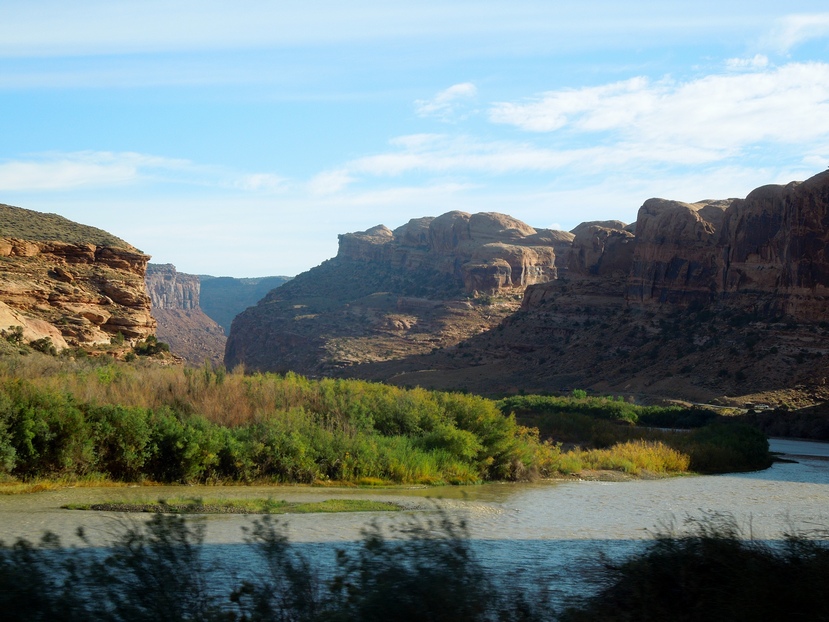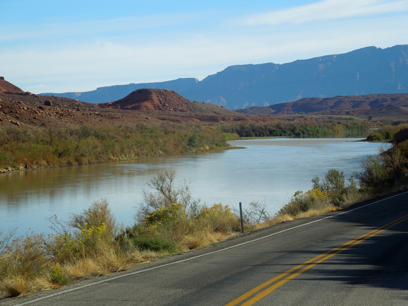 Da der Fahrtag heute nicht so lang ausfallen würde, sind wir bisschen länger liegen geblieben und haben uns nochmal das gute Frühstück schmecken lassen. Einen Kaffee to go mitgenommen, Auto eingeladen und los gings. Sind aber nicht auf dem kürzeren Weg über die 191 bis zur Interstate, sondern direkt nach dem Hotel vor der Brücke rechts ab auf die #128. Erschien uns landschaftlich reizvoller, trotz eines Umwegs, und so wars dann auch. Die Straße läuft etliche Meilen direkt am Colorado entlang, war sehr schön zu fahren. Hier mal paar Bilder von unterwegs :