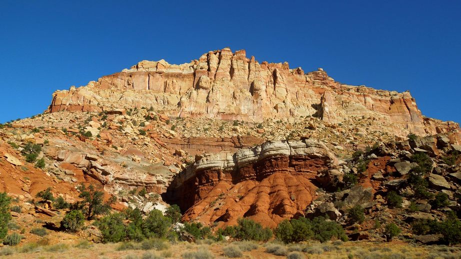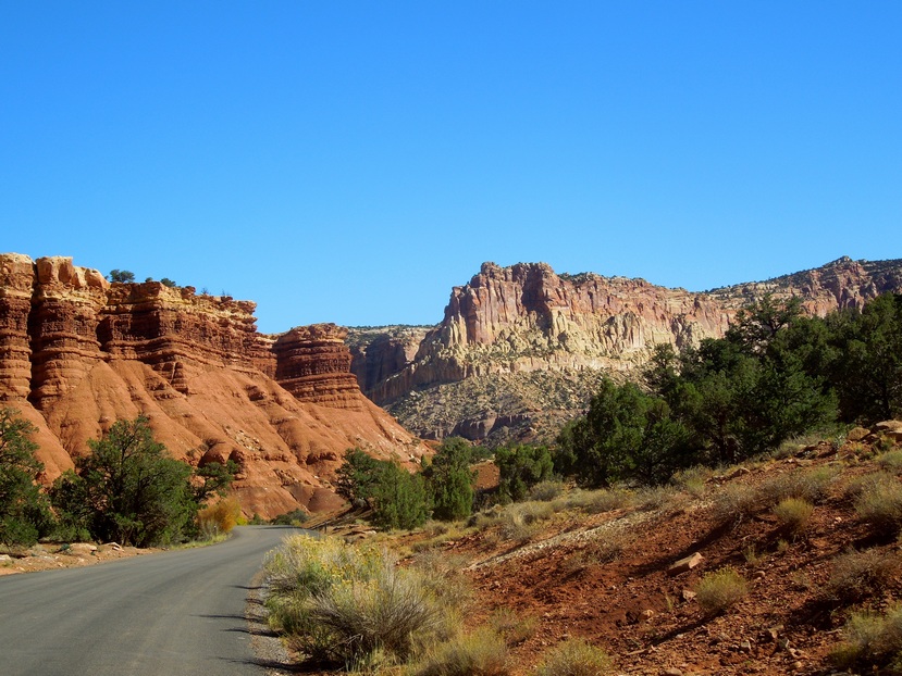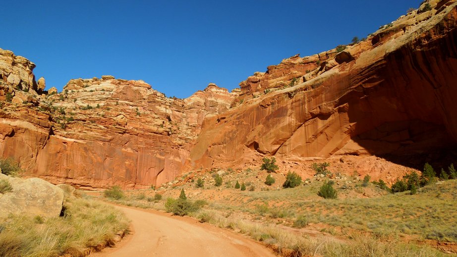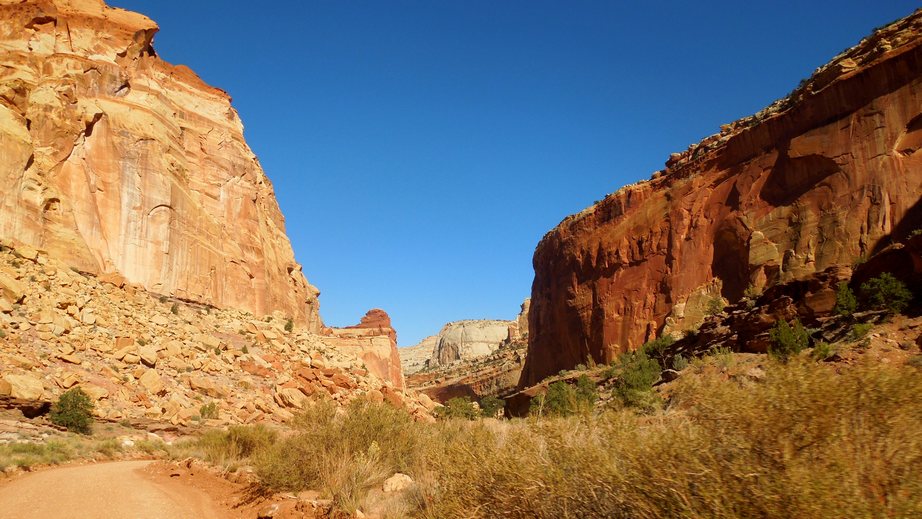 Nachdem wir dort eine ganze Weile verbracht hatten sowie einer kleinen Snack- und Trinkpause am Aussichtspunkt, sind wir dann wieder los Richtung Torrey. So erreichten wir schließlich zuerst Fruita und das Capitol Reef Visitor Center :