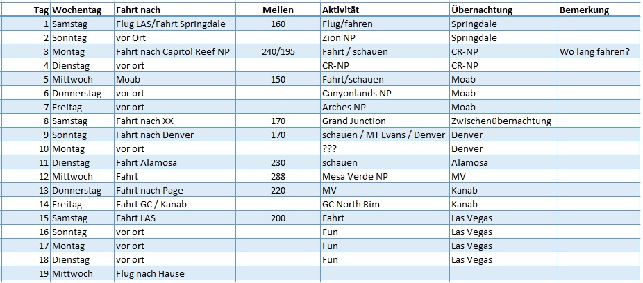 ach ja, was ICH vergessen habe, eine Übernachtung im Monument Valley (MV) ist auch geplant :-)