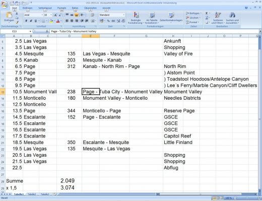 Außerdem würde ich nicht von Monticello wieder nach Page zurück, um von dort wieder nach Escalante zu fahren (bzw. bei Umkehrung der Route nicht von Escalante nach Page fahren) - es sei denn, Du willst unbedingt. die Cottonwood Canyon Road fahren, die zur Zeit aber nicht sonderlich gepflegt wird (da gibt es