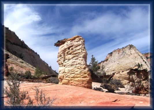im Zion NP: vom Osteingang ( vom Bryce C. kommend ) Checkerboard Mesa, dazu die Augen offenhalten und nach rechts und links schauen ( Submarine Hoodoo , ....)