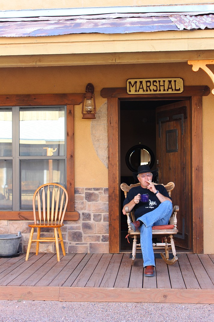 Ich kochte mir einen starken Cowboy Coffee, zündete mir eine Fluppe an und setzte mich im stilechten Schaukelstuhl