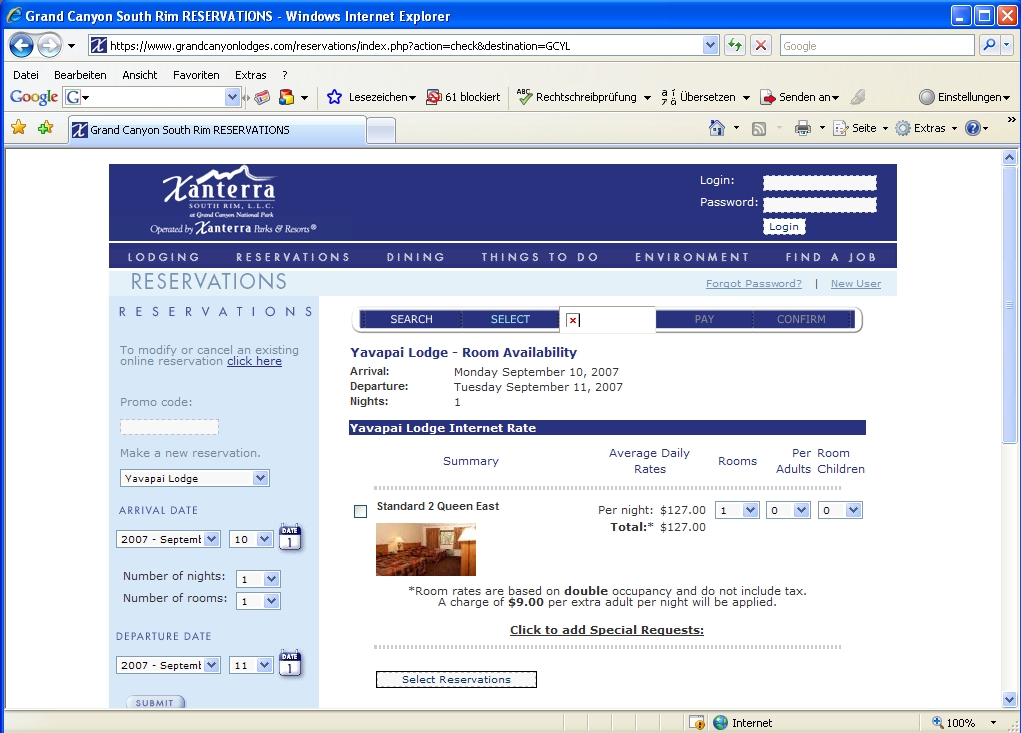 Yavapai Lodge, die ist mittendrin, einfaches 2-Queen vom 07. auf 08. Sept USD 98 = ca. EUR 72; Ostseite 2-Queen oder King USD 127 = ca. EUR 93: :arrow: hier abfragen