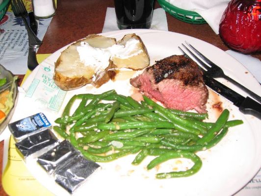 Ich fand es super gut, und das nicht nur wegen dem Preis.  :daumen: Allerdings habe ich es nicht ganz geschafft, obwohl ich kein Spatzenportionesser bin. Der mitgelieferte Salat war auch gut, nur die fertigen amerik. Salatsaucen sind nicht so die Offenbarung.
