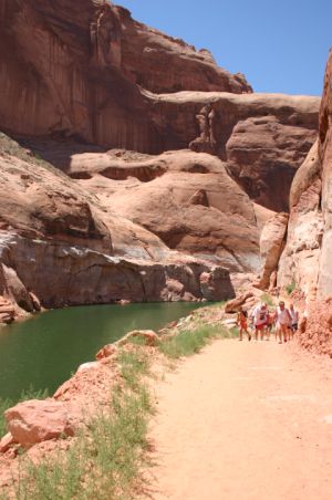 Auf der Fahrt zur Rainbow Bridge bekommt man schon so nette farbige Felsen im Wasser zu sehen. Leider kann ich dir nicht mehr sagen, wann es damit anfängt.