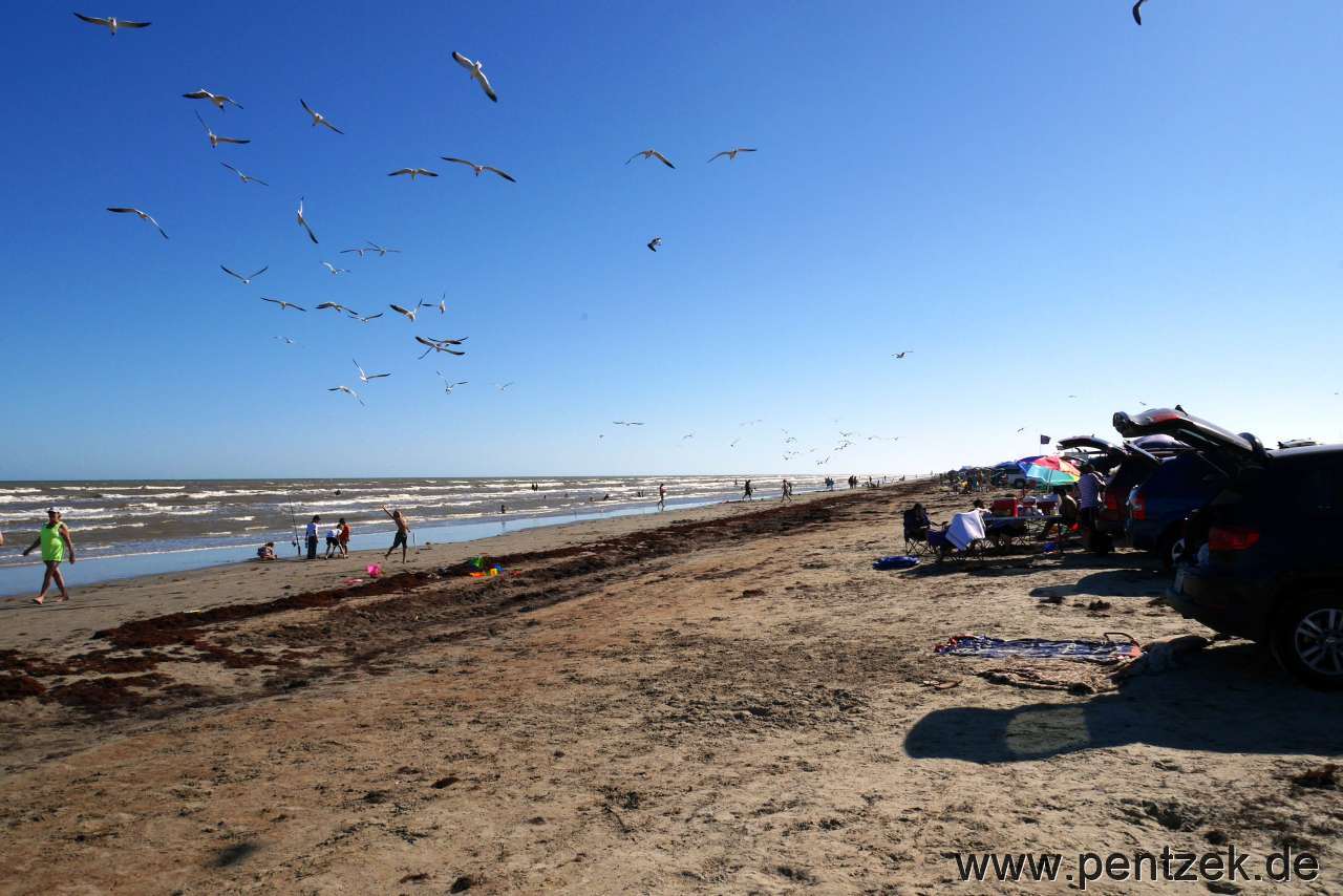 Wir waren dieses Jahr auch in Galveston. Der Strand ist nett. Im April war das Meer noch kühl.