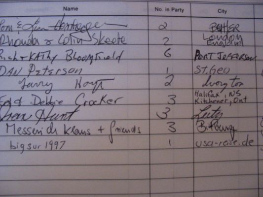 Ich trage mich auch grundsätzlich in die Besucherbücher der Parks sowie übrigens auch in die genauso ausliegenden Besucherlisten der Welcomecenter der Staaten ein.  :)